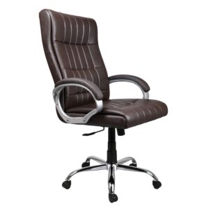 DSOC-1157 High Back Office Chair ek comfortable aur elegant executive seating solution hai, jo long working hours ke liye specially design ki gayi hai. High back cushioned structure neck, shoulder aur lower back ko proper support deta hai. Premium brown leatherette upholstery, chrome-finish arm supports aur strong revolving base is chair ko boss cabin aur corporate offices ke liye perfect choice banate hain.